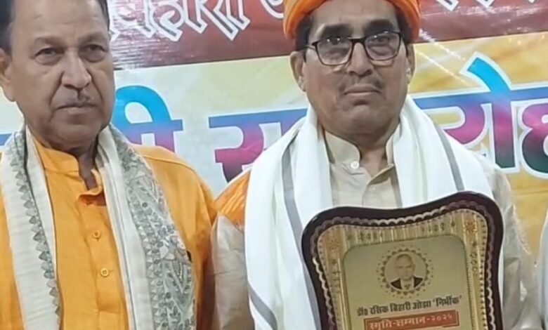 पटना। हिन्दी और भोजपुरी के सुपरिचित कवि समीक्षक डाॅ.सुनील कुमार पाठक को ‘डाॅ.रसिक बिहारी ओझा निर्भीक स्मृति सम्मान-2025 मिलने पर अखिल भारतीय भोजपुरी साहित्य सम्मेलन के अध्यक्ष डॉ.ब्रजभूषण मिश्र,महासचिव प्रो.जयकांत सिंह ,कार्यकारी अध्यक्ष डाॅ.महामाया प्रसाद विनोद,डॉ.विष्णुदेव तिवारी,वरिष्ठ साहित्यकार श्री भगवती प्रसाद द्विवेदी,गंगा प्रसाद अरुण ,’संझवत’ पत्रिका के सम्पादक रामरक्षा मिश्र ‘विमल’, डाॅ.शंकर मुनि राय,सूर्यदेव पाठक पराग, चंद्रेश्वर ,डाॅ.जितेन्द्र वर्मा ,डाॅ.संतोष पटेल, गंगा प्रसाद अरुण, कमलेश राय, कनक किशोर,हारुन, शैलेन्द्र, प्रो.अशोक प्रियंवद, डॉ. पृथ्वीराज सिंह, मुकुन्द बिहारी,अनिरुद्ध त्रिपाठी ‘अशेष’,अजय कुमार ओझा,संध्या सिन्हा, आदि कई साहित्यकारों ने बधाई दी है। ज्ञातव्य है कि डाॅ.सुनील को यह सम्मान झारखंड राज्य की अत्यंत प्रतिष्ठित संस्था ‘जमशेदपुर भोजपुरी साहित्य परिषद’ के तत्वावधान में आयोजित निर्भीक जयंती समारोह में मुख्य अतिथि राँची विश्वविद्यालय के पूर्व हिन्दी विभागाध्यक्ष डाॅ.जंगबहादुर पांडेय ने तुलसी भवन में प्रदान किया गया।सम्मान स्वरूप डाॅ.पाठक को अंगवस्त्रम ,स्मृति चिह्न,सम्मान-राशि,प्रमाण पत्र आदि प्रदान किये गये हैं।