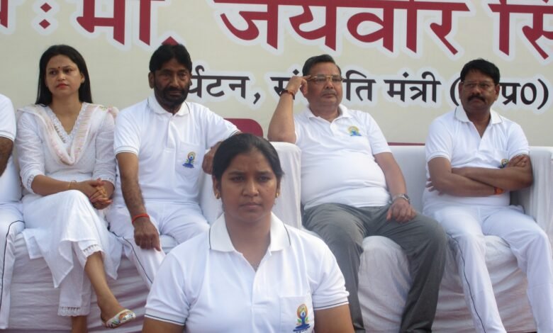 लाल किला प्रांगण में राज्यमंत्री मत्स्य पालन, पशुपालन एवं डेयरी तथा पंचायती राज मंत्रालय भारत सरकार प्रो0 एस0पी0 सिंह बघेल की उपस्थिति में अंतर्राष्ट्रीय योग दिवस कार्यक्रम संपन्न हुआ। एकलव्य स्पोर्ट्स स्टेडियम में योग अभ्यासियों को संबोधित करते हुए जनपद प्रभारी मंत्री ने अपने सम्बोधन में कहा कि प्रधानमंत्री श्री नरेन्द्र मोदी जी ने वर्ष 2014 में संयुक्त राष्ट्र संघ में 21 जून को अन्तर्राष्ट्रीय योग दिवस घोषित करने का प्रस्ताव रखा तथा भारत की प्राचीन विधा, योग को अन्तर्राष्ट्रीय पहचान दिलायी, जो वर्तमान में विश्व के सभी देशों द्वारा 21 जून को अन्तर्राष्ट्रीय योग दिवस के रूप में मनाया जाता है। मंत्री ने योग की विशेषताओं तथा योग से होने वाले स्वास्थ्य लाभ के बारे में बताते हुए कहा कि योग करने से शरीर स्वस्थ होता है, मन को शांति मिलती है। योग,आध्यात्म और आयुर्वेद की परंपरा भारत में प्राचीनकाल से स्थापित रही है, आम जीवन में स्वास्थ्य पद्धतियों के रूप में योग और आयुर्वेद स्थापित थे लेकिन इतनी समृद्ध विरासत को हम वैश्विक स्तर पर ले जाने में विफल रहे। प्रधानमंत्री नरेंद्र मोदी ने 11 वर्ष पहले संयुक्त राष्ट्र संघ के माध्यम से योग का अंतर्राष्ट्रीयकरण व वैश्वीकरण किया और योग को पूरे विश्व में एक नई पहचान के रूप में स्थापित किया जिसका परिणाम है कि आज समूचे विश्व में योग दिवस मनाने का कार्य हो रहा है। जनपद प्रभारी मंत्री ने अपने संबोधन में कहा कि योग, स्वास्थ्य के साथ आध्यात्म व मन वाणी और कर्म को समाहित करते हुए हमें निरोग रहने की कला है। समाज में कहा जाता है “करें योग, रहें निरोग”स्वस्थ व्यक्ति ही अपने अपने परिवार, समाज और देश के विकास में योगदान के साथ,लक्ष्य को हासिल कर सकता है, आज संपूर्ण विश्व में योग दिवस मनाया जा रहा है, भारत के गांव, मोहल्लों, पार्कों में आम आदमी के जीवन में योग ने पहुंच बनाई है। जो योग के लाभ के बारे में नहीं जानते उन्हें प्रतिवर्ष 21जून को बृहद स्तर पर आयोजित किए जा रहे योग दिवस के कार्यक्रमों ने प्रभावित किया है योग से जुड़ने की प्रेरणा दी है। मंत्री ने देश व प्रदेश सरकार की तरफ से योग दिवस की सभी को शुभकामनाएं दीं। कार्यक्रम में जनपद प्रभारी मंत्री व अतिथियों द्वारा योग सप्ताह में योग जागरूकता हेतु योगदान देने वाली संस्थाओं यथा क्रीडा भारती,पतंजलि योग पीठ,अखिल विश्व गायत्री परिवार,भारतीय योग संस्थान, ब्रह्माकुमारी संस्थान,हार्ट फुलनेस,आर्ट ऑफ लिविंग,आर० बी० आयुर्वेदिक मेडीकल कालेज,यूरो सेफ्टी फुटवियर, यूथ वेलफेयर सोसाइटी,तपन ग्रुप आदि को प्रशस्ति पत्र व मोमेंटो देकर सम्मानित किया गया, कार्यक्रम सेल्फी पॉइंट भी बनाए गए थे जहां लोगों ने अपनी सेल्फी 