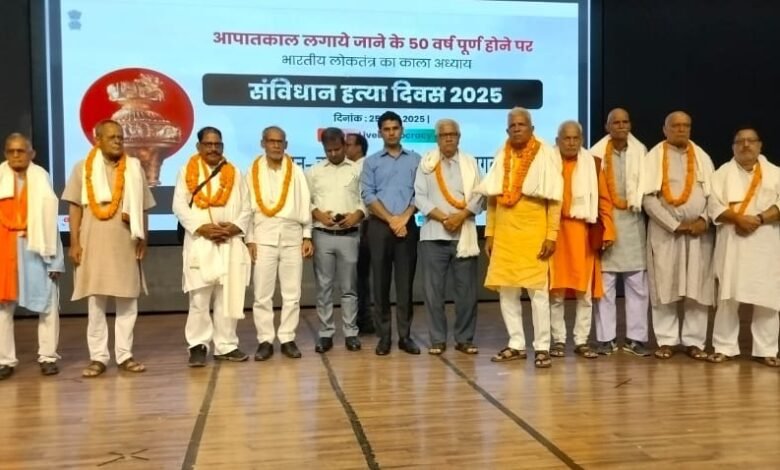 आजमगढ़। 25 जून 1975 को आपातकाल की घोषणा की गई थी। उक्त के क्रम में आपातकाल की 50वीं वर्षगांठ के अवसर पर आज हरिऔध कला केन्द्र आजमगढ़ में मुख्य विकास अधिकारी श्री परीक्षित खटाना की उपस्थिति में आपातकाल दिवस मनाया गया। इस अवसर पर आपातकाल से संबंधित लघु फिल्म को देखा गया। मुख्य विकास अधिकारी ने कहा कि शासन के निर्देशानुसार आज आपातकाल की 50वीं वर्षगांठ मनायी जा रही है। उन्होने कहा कि आपातकाल के समय लोकतंत्र सेनानियों ने बहुत सारी यातनाएं झेली हैं एवं लोकतंत्र को जीवित रखने में उनका बहुत बड़ा योगदान रहा है, यह हमारे लिए अनुकरणीय हैं। उन्होने कहा कि युवा पीढ़ी को उनके बारे में जानने का यह सुनहरा मौका है। मुख्य विकास अधिकारी द्वारा लोकतंत्र सेनानियों के प्रति कृतज्ञता व्यक्त की गयी।इस अवसर पर मुख्य विकास अधिकारी द्वारा 15 लोकतंत्र सेनानियों-प्रभुनाथ सिंह, पतिराम यादव, हरिश्चन्द्र राय, ओमप्रकाश राय, सुभाष चन्द, वशिष्ठ पाण्डेय, बालमुकुन्द जायसवाल, कपिलदेव, नागेन्द्र राय, सिंहासन यादव, चन्द्रविनोद सिंह, रामफेर कानू, भृगुनाथ, रामनयन सिंह, रविन्द्रनाथ राय को प्रतिकात्मक रूप से माला पहनाकर एवं अंग वस्त्र देकर सम्मानित किया गया। इसके पश्चात मुख्य विकास अधिकारी द्वारा आपातकाल की 50वीं वर्षगांठ के अवसर पर सूचना एवं जनसम्पर्क विभाग, आजमगढ़ द्वारा लगायी गयी प्रदर्शनी का अवलोकन किया गया।