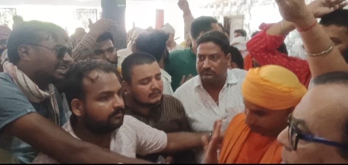 राजेश कुमार गुप्ता /बलिया। विश्वव्यापी ब्राह्मण एकता महासंघ के राष्ट्रीय संयोजक एवं बैरिया-363-विधान सभा के भाजपा नेता श्री सी०बी०मिश्र ने श्री महंत जी के समर्थन में रसड़ा के चेयरमैन विनय जायसवाल की गिरफ्तारी को लेकर विरोध जताया और कहा की जल्द से जल्द गिरफ्तारी नहीं हुआ तो हम उग्र आंदोलन के लिए बाध्य होंगे। राष्ट्रीय उपाध्यक्ष डॉ०विजय तिवारी ने चेयरमैन की गिरफ्तारी नहीं होना प्रशासन की लापरवाही बताया। जिला अध्यक्ष हरेराम दुबे ने कहा कि अपने ब्राह्मण समाज के दु:ख-सुख में सदैव खड़ा रहूंगा। मौके पर संगठन के जिला प्रभारी विद्या सागर मिश्रा,वरिष्ठ जिला उपाध्यक्ष विजेंद्र तिवारी आदि उपस्थित रहे।
