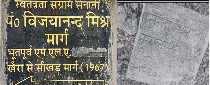 मीरजापुर।आजादी के अमृत महोत्सव में मीरजापुर जिले के प्रथम विधायक रहे स्वतंत्रता सेनानी पंडित विजयानंद मिश्र के गाँव सीखड़ जाने वाले खैरा- सीखड़ लिंक रोड के खैरा और सीखड़ छोर पर उनके सम्मान में लगा स्वतंत्रता सेनानी पंडित विजयानंद मिश्र खैरा सीखड़ मार्ग ,स्वतंत्रता सेनानी पंडित विजयानंद मिश्र सीखड़ खैरा मार्ग का शिलापट्ट इस लिंक रोड के जीर्णोद्धार के समय तोड़ा गया था। कई माह गुजर गए लेकिन कार्यदाई संस्था ने तोड़े गए बोर्ड की जगह नया बोर्ड नहीं लगाया।वरिष्ठ संपादक राजीव कुमार ओझा ने कमिश्नर विंध्याचल मंडल बालकृष्ण त्रिपाठी एवं एडिशनल कमिश्नर विंध्याचल मंडल डाक्टर विश्राम से मुलाक़ात कर उन्हें इसकी जानकारी दी। ज्ञापन देकर मीरजापुर जिले के प्रथम विधायक स्वतंत्रता सेनानी पंडित विजयानंद मिश्र के गाँव सीखड़ जाने वाली खैरा -सीखड़ लिंक रोड के खैरा और सीखड़ छोर पर उनके सम्मान में लगा स्वतंत्रता सेनानी पंडित विजयानंद मिश्र खैरा सीखड़ मार्ग का मार्ग संकेतक शिलापट्ट पूर्ववत लगाए जाने का निवेदन किया था। कमिश्नर एवं एडिशनल कमिश्नर ने श्री ओझा के ध्यानाकर्षण का संज्ञान लेकर स्वतंत्रता संग्राम सेनानी के सम्मान में मार्ग संकेतक शिलापट्ट लगवाना सुनिश्चित कराया। श्री ओझा ने कमिश्नर एवं एडिशनल कमिश्नर के प्रति आभार ज्ञापित किया है।