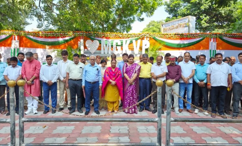 वाराणसी। महात्मा गांधी काशी विद्यापीठ में विभाजन विभीषिका स्मृति दिवस पर गुरुवार को विभाजन विभीषिका के दौरान विस्थापित परिवारों के सदस्यों के साथ त्रासदी के दौरान प्राणोत्सर्ग करने वाले लोगों की याद में 02 मिनट की मौन श्रद्धांजलि दी गई। पंत प्रशासनिक भवन के सामने स्थित बापू प्रतिमा के पास आयोजित मौन श्रद्धांजलि सभा में कुलपति प्रो. आनन्द कुमार त्यागी के प्रतिनिधि प्रो. सुधीर कुमार शुक्ल, कुलसचिव डॉ. सुनीता पाण्डेय, परीक्षा नियंत्रक दीप्ति मिश्रा, कुलानुशासक प्रो. के.के. सिंह, जनसंपर्क अधिकारी डॉ. नागेन्द्र कुमार सिंह, उप कुलसचिव हरीश चन्द सहित विश्वविद्यालय के अधिकारीगण, कर्मचारीगण ने भावपूर्ण श्रद्धांजलि अर्पित की। इसके अलावा विश्वविद्यालय के सभी संकायों, संस्थानों व विभागों में भी मौन श्रद्धांजलि सभा आयोजित हुई, जिसमें प्राध्यापकगण, कर्मचारीगण एवं छात्र-छात्राओं श्रद्धांजलि दी।
