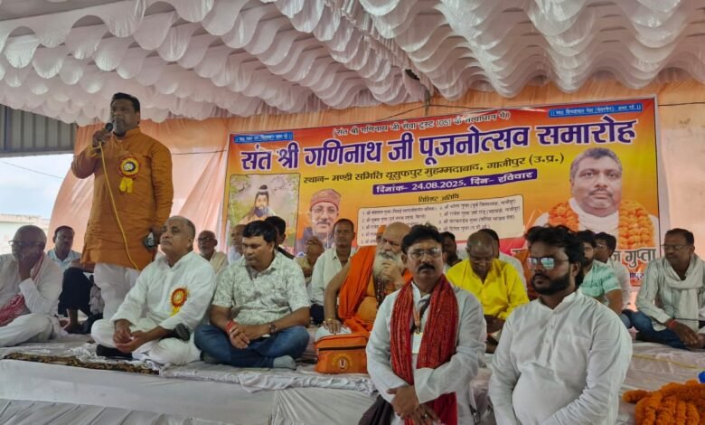 गाजीपुर।मुहम्मदाबाद तहसील अंतर्गत कृषि मंडी समिति मे संत गणिनाथ का पूजनोत्सव समारोह हर्ष और उल्लास के साथ संपन्न हुआ।कार्यक्रम की शुरुआत सुबह ९ बजे से शाहनिंदा स्थित महाबीर मंदिर से शोभायात्रा जुलूस के रूप मे निकाल कर हुई।जुलूस शाहनिंदा से शुरु होकर क़स्बा होते हुए कृषि मंडी समिति स्थल पर समाप्त हुआ।कृषि मंडी स्थल पर लोगों के पहुँचने के पश्चात पूजनोत्सव समारोह प्रारम्भ हुआ जिसके मुख्य अतिथि ब्लाक प्रमुख कासिमाबाद मनोज गुप्ता रहे।कार्यक्रम की अध्यक्षता समाजसेवी गोपाल गुप्ता एवं परमानंद गुप्ता पूर्व प्रधान ने तथा संचालन मनीष गुप्ता ने किया।कार्यक्रम मे उपस्थित सभी सज्जनो का आभार जैनेश पंकज द्वारा किया गया।