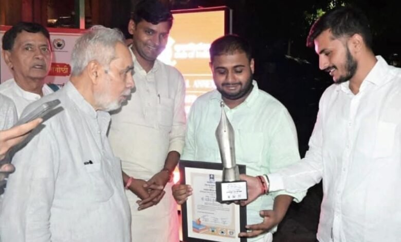 गाजीपुर। भांवरकोल ब्लॉक अंतर्गतक्षेत्र शेरपुर खुर्द निवासी नवीन कुमार राय पुत्र मिथलेश राय को पदम् भूषण से सम्मानित राम बहादुर राय ,पद्मश्री अशोक भगत व झारखंड(चतरा) के सांसद कालीचरण सिंह के हाथों विद्या सेतु सम्मान 2025 से सम्मानित किया गया।