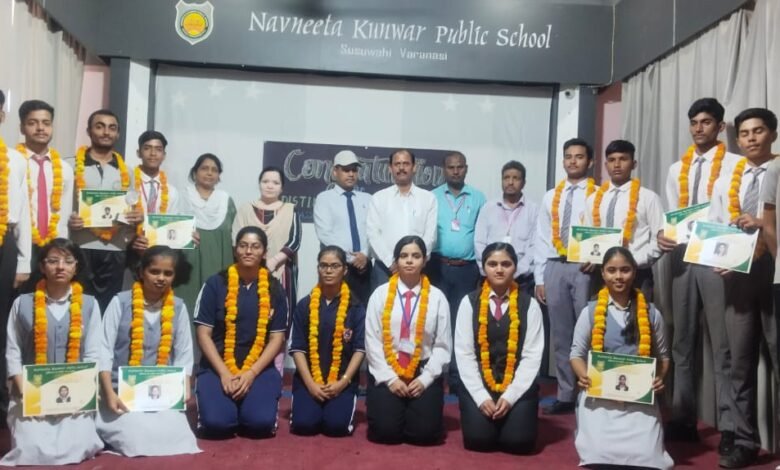 वाराणसी।सी.बी.एस.ई. के घोषित परीक्षा परिणाम नवनीता कुंअर पब्लिक स्कूल सुसुवाही वाराणसी स्थित परिसर में कक्षा 10, 2024 25 बैच के बच्चों के बोर्ड परिणाम में बेहतर प्रदर्शन करने वाले छात्रों का सम्मान समारोह आयोजित किया गया। कार्यक्रम में विद्यालय प्रबंधक राजेश कुमार राय, उपाध्यक्ष प्रवीण राय, प्रधानाचार्य डॉ दिवाकर राय तथा समन्वयक असीम कुमार घोषाल उपस्थित रहे। दीप प्रज्वलित के पश्चात सभी बच्चों को विद्यालय परिवार की तरफ से माल्यार्पण एवं सर्टिफिकेट देकर सम्मानित किया गया । छात्र ऋषिराज ने 93.6, आयुष कुमार ने 92.4, लक्ष्य ने 92.5, विश्वास राय ने 92, उमंग तिवारी 91.6 प्रतिशत अंको के साथ बेहतरीन प्रदर्शन किया, तथा साथ ही बच्चों ने हिंदी विषय में 97, अंग्रेजी में 94, संस्कृत में 98, गणित में 96, विज्ञान में 96, सामाजिक विषय में 97 अंक पाकर अपनी दक्षता प्रस्तुत की। प्रधानाचार्य डॉ दिवाकर राय ने सभी बच्चों को बधाइयां दी तथा उन्हें उनके उज्जवल भविष्य की कामना की।