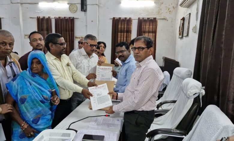 बसन्त कुमार गुप्ता/मिर्जापुर। सदर तहसील में आयोजित तहसील दिवस पर लेखपाल संघ के खंड मंत्री रामआसरे के नेतृत्व में मुख्यमंत्री को सम्बोधित ज्ञापन एडीएम LR देवेन्द्र सिंह को सौंपा और कहा कि विगत कई वर्षों से हम लोगों की कोई सुनवाई नहीं हो रही है। यदि अब भी हमारी मांगे पूरी नहीं हुई तो हम सब अनशन को बाध्य होंगे। ज्ञापन देने वालों में खंड मंत्री रामआसरे, तहसील अध्यक्ष सुरेन्द्र, तहसील मंत्री अंकेश, पूर्व सदर तहसील अध्यक्ष बेनू यादव, संतोष सरोज, कपिल शर्मा, घनश्याम, मन वर्मा, राकेश, बृजेश, अभिषेक, राजेश, अन्य लेखपाल उपस्थित रहे।