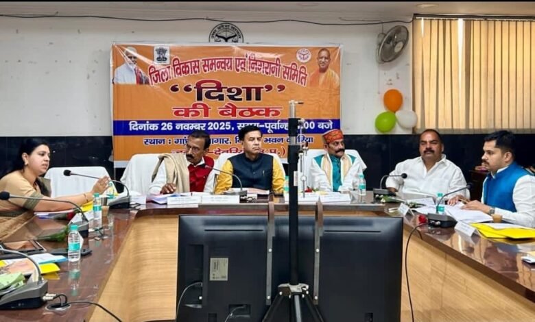 देवरिया। जिला विकास समन्वय एवं निगरानी समिति (दिशा) की बैठक आज विकास भवन स्थित सभागार में सम्पन्न हुई। बैठक की अध्यक्षता सदर सांसद शशांक मणि त्रिपाठी ने की तथा सह-अध्यक्षता सलेमपुर सांसद रमाशंकर राजभर द्वारा की गई। बैठक में जिला पंचायत अध्यक्ष पंडित गिरीश चंद्र तिवारी, विधायक बरहज दीपक मिश्रा, एमएलसी प्रतिनिधि राजीव, जिलाधिकारी दिव्या मित्तल, पुलिस अधीक्षक संजीव सुमन, मुख्य विकास अधिकारी प्रत्यूष पाण्डेय सहित संबंधित विभागों के अधिकारी उपस्थित रहे। सदर सांसद शशांक मणि त्रिपाठी ने कहा कि जनपद के विकास के लिए अधिकारी समयबद्ध एवं गुणवत्तापूर्ण कार्य सुनिश्चित करें। उन्होंने विकास परियोजनाओं की प्रगति की समीक्षा करते हुए स्पष्ट निर्देश दिए कि जनता से जुड़े कार्यों में किसी प्रकार की लापरवाही न हो और विभागों के बीच बेहतर समन्वय स्थापित किया जाए। सलेमपुर सांसद रमाशंकर राजभर ने विद्युत, स्वास्थ्य तथा अन्य जनसुविधाओं से संबंधित बिंदुओं पर जानकारी लेते हुए विभागीय अधिकारियों को आवश्यक कार्यवाही करने को कहा। बैठक में प्रधानमंत्री आवास योजना, सड़क निर्माण, विद्युत आपूर्ति, जल जीवन मिशन, विद्यालयों की मूलभूत सुविधाएँ, पेंशन, शौचालय निर्माण एवं अन्य विकास कार्यों की प्रगति की समीक्षा की गई। अधिकारियों को निर्देशित किया गया कि लंबित कार्यों को प्राथमिकता के आधार पर पूर्ण कराया जाए। जिलाधिकारी दिव्या मित्तल ने कहा कि दिशा बैठक का उद्देश्य विकास कार्यों को गति देना और जनप्रतिनिधियों एवं प्रशासन के बीच समन्वय को मजबूत करना है। उन्होंने सभी अधिकारियों को निर्देश दिया कि बैठक में प्राप्त दिशा-निर्देशों का तत्काल प्रभाव से पालन सुनिश्चित करें और आगामी बैठक में किसी भी प्रकार की प्रगति-हीन स्थिति न रहे। बैठक में मुख्य विकास अधिकारी द्वारा विगत बैठक में लिए गए बिंदुओं की पुष्टि करायी गई तथा विभिन्न विभागों ने अपनी योजनाओं की अद्यतन प्रगति प्रस्तुत की।बैठक में जिला स्तरीय विभिन्न विभागों के अधिकारी उपस्थित रहे।