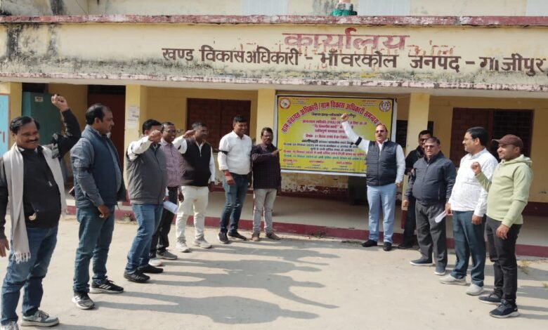 गाजीपुर। ग्राम पंचायत सचिवों द्वारा ऑनलाइन उपस्थिति के आदेश के विरोध में दूसरे दिन भी समस्त ब्लाकों पर जोरदार प्रदर्शन किया गया।जनपद के सादात, भांवरकोल, रेवतीपुर और अन्य सभी विकास खंडों में सचिवों ने काली पट्टी बांधकर शासन के इस निर्णय पर दूसरे दिन भी लगातार विरोध दर्ज कराया। समन्वय समिति के अध्यक्ष सूर्यभानु राय ने कहा कि सचिवों से लक्ष्य आधारित कार्य लिया जाता है, छुट्टियों के दिन भी काम के लिए बुलाया जाता है, तो फिर ऑनलाइन उपस्थिति की बात बेमानी है। उन्होंने कहा कि उच्च अधिकारियों द्वारा दबाव बनाकर अन्य विभागों के कार्य कराए जाने से सचिव नाराज हैं।उन्होंने कहा कि सीमित संसाधनों वाले सचिवों पर असीमित कार्य दबाव सरकार की दामात्मक दृष्टि का परिचायक है। विकास खंड सादात के ब्लॉक अध्यक्ष शैलेंद्र प्रताप सिंह ने बताया कि यह धरना प्रदर्शन एक सुनियोजित कार्यक्रम का हिस्सा है। उन्होंने कहा कि 5 दिसंबर से सरकारी व्हाट्सएप ग्रुप से अलग होने और 10 दिसंबर से निजी वाहनों का उपयोग बंद करने का निर्णय लिया गया है। रेवतीपुर ब्लॉक में पंचायत सचिवों ने ऑनलाइन उपस्थिति लागू किए जाने के खिलाफ जोरदार प्रदर्शन किया। प्रदर्शन का नेतृत्व ग्राम विकास अधिकारी एसोसिएशन के प्रदेश प्रवक्ता एवं ब्लॉक अध्यक्ष विनीत कुमार राय ने किया। उन्होंने कहा कि यदि 15 दिनों के भीतर ऑनलाइन उपस्थिति का आदेश वापस नहीं लिया गया, तो सभी पंचायत सचिव और ग्राम विकास अधिकारी अपने निजी वाहनों का उपयोग बंद कर देंगे।