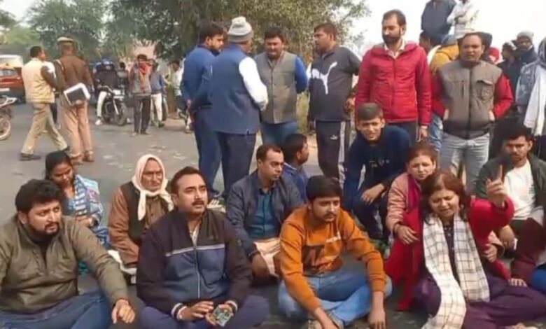 आजमगढ़:मृतक की पत्नी धरने पर बैठी
