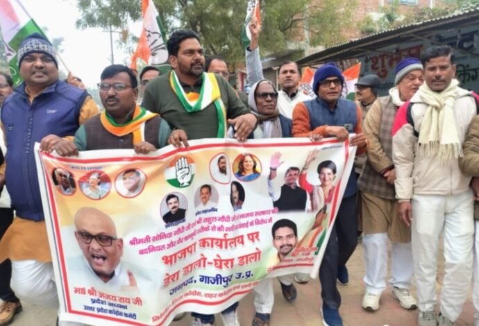 गाजीपुर। आज यही नज़ारा देखने को मिला, जहाँ शांतिपूर्ण और संवैधानिक तरीके से विरोध कर रही कांग्रेस को भाजपा सरकार ने दमन और बल प्रयोग से रोकने का शर्मनाक प्रयास किया। नेशनल हेराल्ड मामले में गांधी परिवार को झूठे, मनगढ़ंत और राजनीतिक बदले की भावना से फँसाए जाने के विरोध में कांग्रेस के शीर्ष नेतृत्व के आह्वान पर जिला एवं शहर कांग्रेस कमेटी द्वारा भाजपा कार्यालय घेराव का कार्यक्रम तय था। भाजपा सरकार के इशारे पर पुलिस प्रशासन ने बीती रात से ही कांग्रेस के दर्जन भर नेताओं को हाउस अरेस्ट कर लिया।ताकि आवाज़ दबाई जा सके। इसके बावजूद जिला अध्यक्ष सुनील राम एवं शहर अध्यक्ष संदीप विश्वकर्मा के नेतृत्व में कांग्रेस कार्यकर्ता बैनर लेकर भाजपा कार्यालय की ओर बढ़े, छावनी लाइन स्थित कार्यालय के पास भारी संख्या में सशस्त्र पुलिस तैनात। कांग्रेस नेताओं को बलपूर्वक रोका गया। कई को हिरासत में लेकर कोतवाली बैठा दिया गया। इस मौके पर जिलाध्यक्ष सुनील राम ने कहा यह भाजपा की बौखलाहट का जीता-जागता प्रमाण है। कई वर्षों से ईडी, सीबीआई और पुलिस के दम पर कांग्रेस को डराने की कोशिश की जा रही है, लेकिन भाजपा भूल गई है कि कांग्रेस डरने वाली नहीं है। सोनिया गांधी और राहुल गांधी को झूठे मामलों में फँसाकर भाजपा अपनी नाकामी छिपाना चाहती है। उन्होंने कहा कि महँगाई, बेरोज़गारी, किसानों की बदहाली और संविधान पर हमले से ध्यान भटकाने के लिए मोदी सरकार विपक्ष पर दमनात्मक कार्रवाई कर रही है। कांग्रेस देश की सड़कों पर उतरकर भाजपा के झूठ का पर्दाफाश करेगी। शहर अध्यक्ष संदीप विश्वकर्मा ने कहा, यह लोकतंत्र नहीं, भाजपा की तानाशाही है। शांतिपूर्ण विरोध से डरकर हाउस अरेस्ट और गिरफ्तारियाँ कराना यह साबित करता है कि भाजपा को जनता की अदालत से डर लगने लगा है।