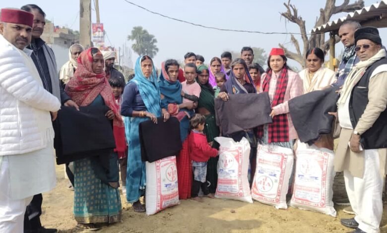 पीड़ित परिवारों के बीच सपा महिला सभा की प्रदेश सचिव पुनीता सिंह खुशबू, कंबल व खाद्य सामग्री का किया वितरण