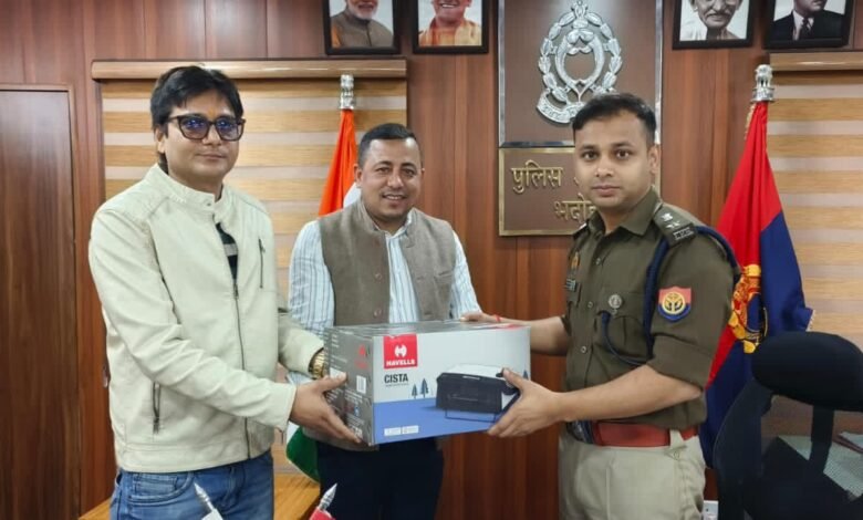 भदोही : एसपी अभिमन्यु मांगलिक को डॉ रत्नेश एवं सिस्को के निदेशक आशुतोष ने भेट किए 10 हीटर