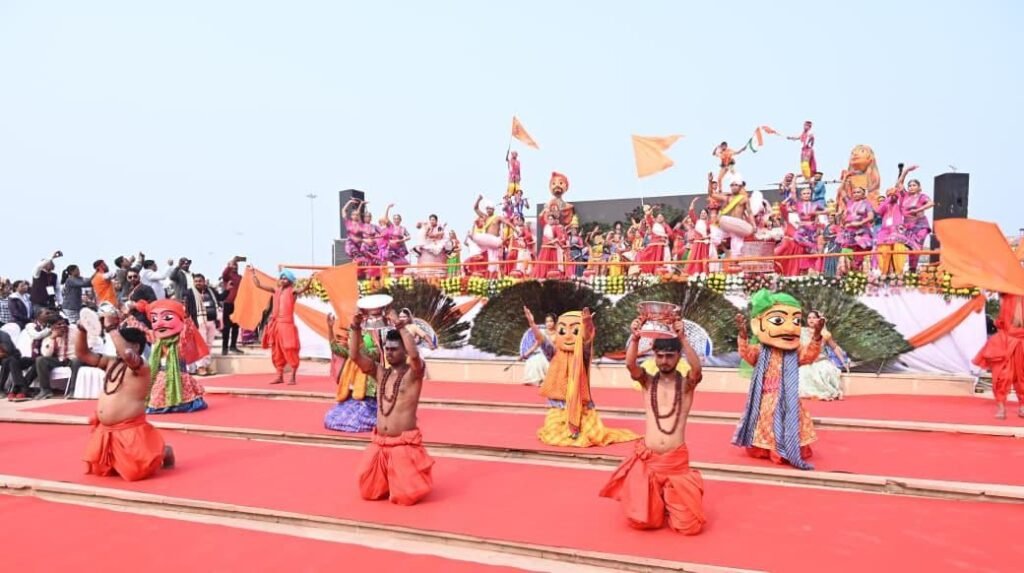 राष्ट्र प्रेरणा स्थल के मंच पर उतरा ‘संपूर्ण उत्तर प्रदेश’ यूपी दिवस पर सबसे पहले वंदे मातरम् का गान हुआ। इसके उपरांत अतिथियों ने दीप प्रज्ज्वलन कर कार्यक्रम का शुभारंभ किया। इस दौरान थीम सांग ‘उत्तर प्रदेश-उत्तम प्रदेश’ ने उत्तर प्रदेश की महिमा का वर्णन किया। इसके पश्चात राष्ट्र प्रेरणा स्थल के मंच पर ‘संपूर्ण उत्तर प्रदेश’ उतर पड़ा, जब ब्रज, बुंदेली, अवधी, भोजपुरी बोलियों के ‘सांस्कृतिक संगम’ में अतिथियों व दर्शकों ने आनंद की डुबकी लगाई। विभिन्न अंचलों से आए कलाकारों ने अपनी मनमोहक प्रस्तुतियों से हर किसी का दिल जीत लिया, दर्शकों ने भी तालियां बजाकर इन कलाकारों का उत्साहवर्धन करने में कोई कसर नहीं छोड़ी।