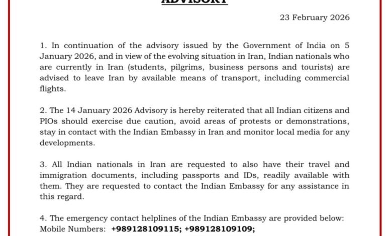 तेहरान। भारत ने ईरान में रहने वाले भारतीय नागरिकों के लिए एडवाइजरी जारी की है, जिसमें वहां रहने वाले नागरिकों को जल्द से जल्द ईरान छोड़ने की सलाह दी गई है। नागरिकों की मदद के लिए हेल्पलाइन नंबर भी जारी किया गया है। परमाणु कार्यक्रम पर समझौते को लेकर ईरान और अमेरिका के बीच तनाव चरम पर है। इस बीच तेहरान स्थित भारतीय दूतावास ने एहतियात के तौर पर एक आधिकारिक बयान जारी करते हुए यह सलाह जारी की है।भारतीय दूतावास ने ईरान में रहने वाले भारतीय नागरिकों को अपनी यात्रा का विवरण और दस्तावेज भी तैयार रखने को कहा है। इसके अलावा उन्हें दूतावास के साथ संपर्क में रहने को भी कहा गया है। भारतीय दूतावास ने अपनी पिछली एडवाइजरी को दोहराते हुए ईरान में मौजूद भारतीय नागरिकों से अपील की है कि सभी लोग बदलती स्थिति पर नजर रखें और जल्द से जल्द उड़ानों और अन्य किसी भी विकल्प की मदद से ईरान छोड़ दें। दूतावास ने इस एडवाइजरी की कॉपी सोशल मीडिया मंच ‘एक्स’ पर भी साझा की है, जिसमें कहा गया है पांच जनवरी को भारत सरकार की ओर से जारी एडवाइजरी की निरंतरता में और ईरान में बदलती स्थिति को देखते हुए, ईरान में मौजूद भारतीय नागरिकों (जिनमें छात्र, व्यापारी, पर्यटक और तीर्थयात्री शामिल हैं) को उपलब्ध परिवहन साधनों का इस्तेमाल करते हुए तत्काल ईरान छोड़ने की सलाह दी जाती है। सभी भारतीयों से प्रार्थना है कि वे अपने ट्रैवल और इमिग्रेशन डॉक्यूमेंट्स, जिसमें पासपोर्ट और आईडी शामिल हैं, अपने पास ध्यान से रखें। उनसे रिक्वेस्ट है कि इस बारे में किसी भी मदद के लिए इंडियन एम्बेसी से कॉन्टैक्ट करें।बता दें कि अमेरिका और ईरान के बीच अभी तक न्यूक्लियर डील नहीं हो पाई है और उनके बीच अगले राउंड की बातचीत जल्द ही जिनेवा में हो सकती है। मीडिया रिपोर्ट्स के अनुसार, न्यूक्लियर डील पर अनिश्चितता के बीच अमेरिका ने ईरान के आसपास वॉरशिप और अपनी सेना की मौजूदगी और बढ़ा दी है, जिससे युद्ध जैसे हालात बन सकते हैं।