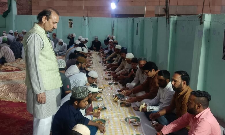 अजीत पाण्डेय/वाराणसी । उम्मते मुस्लिमां के तत्वाधान में शनिवार को चौक स्थित मस्जिद बीबी रज़िया में रोज़ा इफ़्तार की दावत आयोजित की गई जिसमें हज़ारों की संख्या में रोज़ेदार समेत शहर के गणमान्य नागरिक सम्मिलित हुए। मग़रिब की अज़ान होने पर रोज़ेदारों ने रोज़ा खोला। मग़रिब की नमाज़ मौलाना अज़ीजुल्ला क़ादरी साहब ने पढ़ाई। नमाज़ के बाद मुल्क में अमन चैन और तरक़्क़ी के साथ ईरान के सुप्रीम लीडर आयतुल्लाह ख़ामेनेई की मग़फ़ेरत और ईरान की फ़तह के लिए दुआख़्वानी हुई।