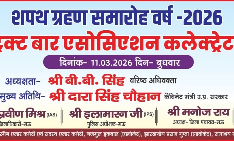 डिस्ट्रिक्ट बार एसोसिएशन कलेक्ट्रेट मऊ का शपथ ग्रहण समारोह 11 मार्च को