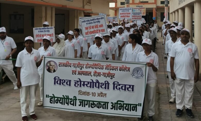 डॉ एके राय/ गाजीपुर। “विश्व होम्योपैथी दिवस-2026” के अवसर पर राजकीय गाजीपुर होम्योपैथिक मेडिकल कॉलेज एवं अस्पताल द्वारा सप्ताहव्यापी जागरुकता कार्यक्रम का आयोजन जारी है। मेडिकल कॉलेज के प्राचार्य प्रोफेसर डॉ राजेंद्र सिंह ने बताया कि महाविद्यालय द्वारा ‘विश्व होम्योपैथी सप्ताह’ का आयोजन एक अप्रैल से 7 अप्रैल तक किया गया है। इसके अंतर्गत जन जागरूकता पैदल यात्रा, नुक्कड़ नाटक, निबंध, रंगोली, वाद विवाद प्रतियोगिता एवं निशुल्क स्वास्थ्य शिविर आदि गतिविधियों का आयोजन सम्पन्न होगा। जागरुकता अभियान के तहत 1 अप्रैल को प्रातः आठ बजे कॉलेज परिसर से जनजागरूकता रैली को प्राचार्य द्वारा हरी झंडी दिखा कर रवाना किया गया। रैली रौजा तिराहा, चंदन नगर, शीतला मंदिर के रास्ते होते हुए महाविद्यालय पहुंची। रास्ते में कई जगह पर नुक्कड़ नाटक “छोटी गोली बड़ा असर” का आयोजन किया गया, विद्यार्थियों ने अपनी शानदार प्रस्तुतियों से दर्शकों का जागरूक किया। प्रतिभागियों ने रोग प्रतिरोधक क्षमता, संक्रमण से बचाव और बीमारियों को जड़ से खत्म करने का सन्देश दिया। इसके उपरांत महाविद्यालय प्रांगण में *वार्षिक स्पोर्ट्स कार्निवल* का भव्य उद्घाटन सम्पन्न हुआ। कार्यक्रम की शुरुआत मार्च पास्ट से हुई, तत्पश्चात, होमियोपैथी के जनक सैमुअल सी एफ हैनीमैन की प्रतिमा पर महाविद्यालय परिवार द्वारा माल्यार्पण किया गया। आयोजित खेल प्रतियोगिताओं में क्रिकेट का उद्घाटन मैच शिक्षकों एवं हॉस्पिटल स्टाफ के बीच 12 ओवर का खेला गया। शिक्षकों की टीम ने मात्र 73 रन बनाए जबकी हॉस्पिटल स्टाफ ने 9 ओवर में मैच जीत लिया। शाम को बैडमिंटन महिला डबल इंटर्न और शिक्षकों के बीच मैच जारी रहा।