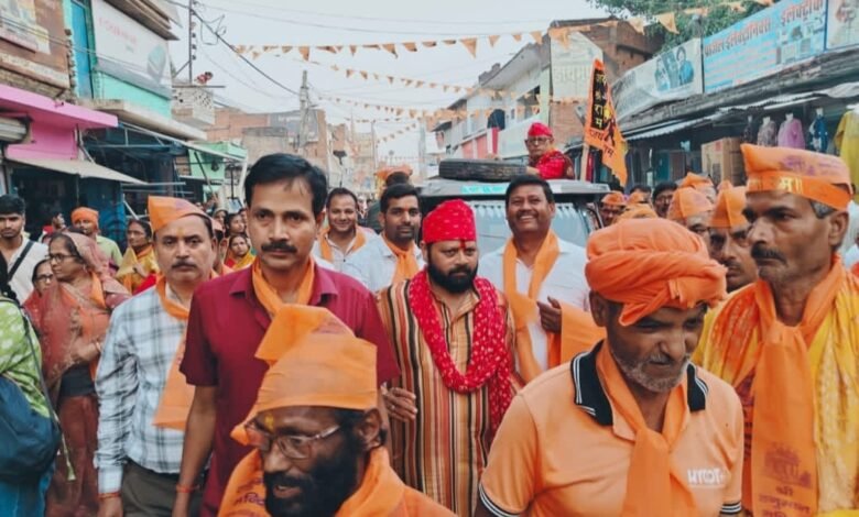 असगर अली, ब्यूरो चीफ / देवरिया । सनातन स्वयंसेवक संघ के तत्वाधान में उपनगर के रानी पोखरा के प्रांगण में विशाल एवं भव्य हनुमान मंदिर का निर्माण कराया गया है जिसमें महावीर हनुमान जी की प्रतिमा को स्थापना के पूर्व पूरे नगर में भ्रमण कराया गया जिसका नेतृत्व सनातन स्वयंसेवक संघ के अध्यक्ष अजय कुमार बरनवाल ने किया। नगर भ्रमण का कार्यक्रम रानी पोखरा के प्रांगण में स्थित छठ माता मंदिर काली माता मंदिर तत्पश्चात श्री राम जानकी मंदिर शिव मंदिर होते हुए आदिशक्ति दुर्गा मंदिर हनुमान मंदिर होते हुए बीआरडी इंटर कॉलेज के पास स्थित काली माता मंदिर पर विधि विधान से पूजन अर्चन कर ध्वज एवं स्पर्श दर्शन कराया गया। इस अवसर पर हनुमान मंदिर का निर्माण कराने वाले नगर के प्रमुख व्यवसायी एवं सामाजिक कार्यकर्ता शशि भूषण बरनवाल संजय कुमार बरनवाल विनोद कुमार बरनवाल संजय गुप्ता, संतोष पांडेय, अरुण कुमार गुप्ता, डॉ प्रमोद बरनवाल, जितेंद्र जायसवाल दुर्गेश्वर सोनी सभासद, राजेश गुप्ता, जितेंद्र जायसवाल नामित सभासद देवेश गुप्ता ,जिला संगठन मंत्री व्यापार मंडल विजय कुमार मद्धेशिया ,नगर अध्यक्ष व्यापार मंडल अखिलेश गुप्ता, अनिल मद्धेशिया सुरेंद्र चौहान, आदित्य जयसवाल राजेश बरनवाल विवेक बरनवाल लक्ष्मण वर्मा, रामेश्वर गुप्ता भोला गुप्ता ,दीपू जयसवाल, राजेश गुप्ता सहित सैकड़ो की संख्या में महिलाएं एवं पुरुष उपस्थित रहे।