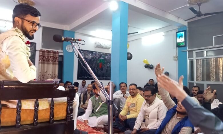 वाराणसी। इमाम हुसैन के बड़े बेटे हज़रत अली अकबर के यौमे विलादत पर वक़्फ़ इमामबाड़ा बी रज्जी साहिबा, नईसड़क में महफ़िल का आयोजन हुआ। इमामबाड़े के मुतवल्ली सैय्यद एजाज़ हुसैन जाफ़री (गुड्डू बाक़री) के संयोजन में आयोजित इस महफ़िल का आग़ाज़ ताहिर जवाद ने कलाम पाक की तिलावत के साथ किया। महफ़िल की निज़ामत कर रहे हसन वास्ती ने नाते पाक का नज़राना पेश किया। इसके बाद शहर भर के मशहूर ओ मारूफ़ शोअरा ने अपने अपने कलाम पेश किये जिनमें मौलाना ज़हीन हैदर दिलकश ग़ाज़ीपुरी, मौलाना इक़बाल ईमानी, मौलाना गुलज़ार मौलाई, मौलाना वसीम असग़र, अतश बनारसी, अंसार बनारसी, वफ़ा बुतुरबी, इकराम भीकपूरी, शराफत बनारसी, शाहआलम बनारसी, आशूर बनारसी, ज़ैदी बनारसी, नज़ाकत चंदौलवी समेत 32 शोअरा ने बारगाहे मौला में नज़राना ए अक़ीदत पेश किया। महफ़िल की अध्यक्षता मौलाना सैय्यद मुहम्मद अक़ील हुसैनी साहब ने की एवं मौलाना सैय्यद ज़मीरुल हसन रिज़वी साहब ने महफ़िल को ख़िताब किया व दुआख़्वानी के साथ आगामी एक साल के लिए महफ़िल को मुल्तवी किया। महफ़िल में शायरों ने अपने कलाम से ऐसा समां बांधा की देर रात तक महफ़िल में सुभान अल्लाह की गूंज रही। ज्ञात हो कि शाबान माह की 11 तारीख़ को इमाम हुसैन के बड़े बेटे हज़रत अली अकबर जिनको हम शबीहे पैग़म्बर भी कहा जाता है उनके जन्म दिवस पर इस महफ़िल का आयोजन होता चला आया है। अंतिम में इमामबाड़े के मुतवल्ली एजाज़ हुसैन जाफ़री ने महफ़िल में शरीक होने वाले शोअरा और मोमिनीन का शुक्रिया अदा किया।
