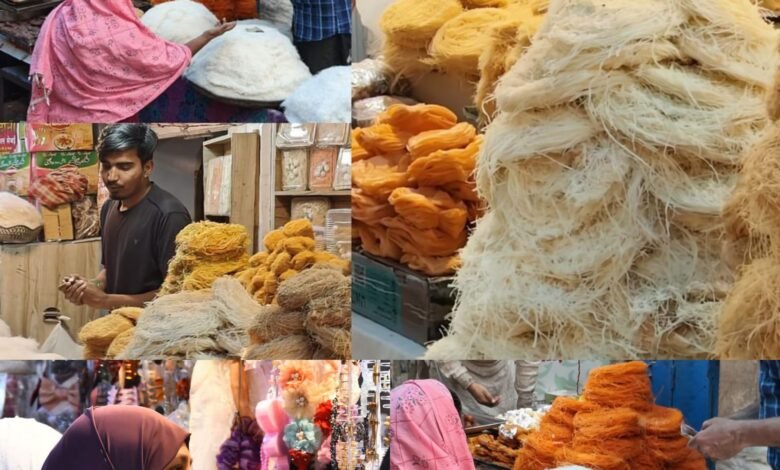 वाराणसी। ईद की खरीदारी अब अंतिम चरण में है। बाजार में सेवई की खुशबू बिखर रही है तो वहीं कुर्ता-पायजामा पहली पसंद बने हुए हैं। बच्चे, युवा और बुजुर्गों में कुर्ता-पायजामा की खरीदारी ज्यादा है। इसके साथ ही इत्र, कपड़े, जूते-चप्पल और टोपी, सौंदर्य प्रसाधन की दुकानें रात तक गुलजार हैं। शाम ढलने के बाद मुस्लिम बाहुल्य इलाकों में चहल-पहल बढ़ रही है। पिछली बार की तुलना में 20 फीसदी अधिक महंगाई भी बाजार में छाई है। इसमें बावजूद रोजेदारों में उत्साह है। भदऊ चुंगी स्थित सेवईं मंडी में अधिकतर कारोबारियों का माल खत्म हो चुका है। सेवईं की बिक्री अभी बनी हुई है।