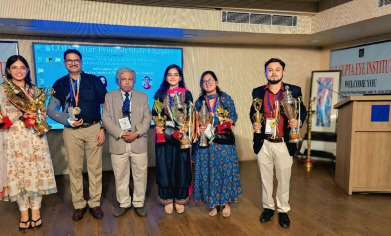 सुशील कुमार मिश्र/ वाराणसी।हाल ही में मुरादाबाद केसी0 एल0 गुप्ता नेत्र संस्थान में आयोजित अखिल भारतीय सामुदायिक नेत्र विज्ञान संगठन (उत्तर प्रदेश चैप्टर) के 7वें वार्षिक सम्मेलन के दौरान बीएचयू के पाँच जूनियर डॉक्टर्स को बेस्ट पेपर अवार्ड मिला है।डॉ. प्रेरणा चौधरी को प्रथम बेस्ट पोस्टर और सर्वश्रेष्ठ वीडियो पुरस्कार तथा तृतीय बेस्ट फ्री पेपर अवार्ड मिला। डॉ प्रेरणा को हर श्रेणी में मिलाकर प्रथम बेस्ट ऑफ़ द बेस्ट ट्रॉफी भी मिला। डॉ शिवांगी सिंह को प्रथम सर्वश्रेष्ठ फ्री पेपर पुरस्कार तथा द्वितीय सर्वश्रेष्ठ फिजिकल पोस्टर अवार्ड मिला तथा डॉ. शिवांगी सिंह को भी द्वितीय बेस्ट ऑफ़ द बेस्ट ट्रॉफी मिला।वही डॉ विशाल सरकार को सर्वश्रेष्ठ रैपिड फायर,डॉ वैशाली कश्यप को तृतीय बेस्ट ऑफ़ द बेस्ट डॉ अनुज यादव को चतुर्थ बेस्ट ऑफ़ द बेस्ट सभी आँखों के कैंसर और चोट से संबधित शोध कार्य विभागाध्यक्ष प्रोफ़ेसर आर पी मौर्य द्वारा के निर्देशन में किया गया था।