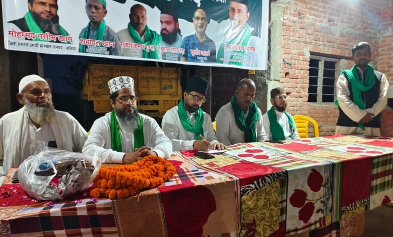 बलिया। सिकंदरपुर विधानसभा में आयोजित एआईएमआईएम पार्टी के कार्यकर्ताओं की समीक्षा बैठक में आगामी विधानसभा 2027 के चुनाव में बेहतर प्रदर्शन करने व जीत की रणनीति बनाई गई। विधानसभा के अध्यक्ष मोहम्मद आसिफ को जिला संयुक्त सचिव व महताब आलम को सिकंदरपुर विधानसभा अध्यक्ष की जिम्मेदारी दी गई। इस दौरान पार्टी कार्यकर्ताओं ने फूलमाला पहनकर उनका स्वागत किया। बतौर मुख्य अतिथि प्रदेश महासचिव मोहम्मद शमीम खान ने कहा कि 2027 का विधानसभा चुनाव देश बेचने वालों और देश बचाने वालों के बीच होगा। राहुल,मायावती,अखिलेश को जनता ने वोट देकर देख लिया। जिला संगठन प्रभारी मोहम्मद नसीम खान ने कहा कि जबतक हम एकजुट होकर दमदारी के साथ चुनावी मैदान में नहीं उतरेंगे, हम अपने वोटो के बिखराव को नहीं रोकेंगे।