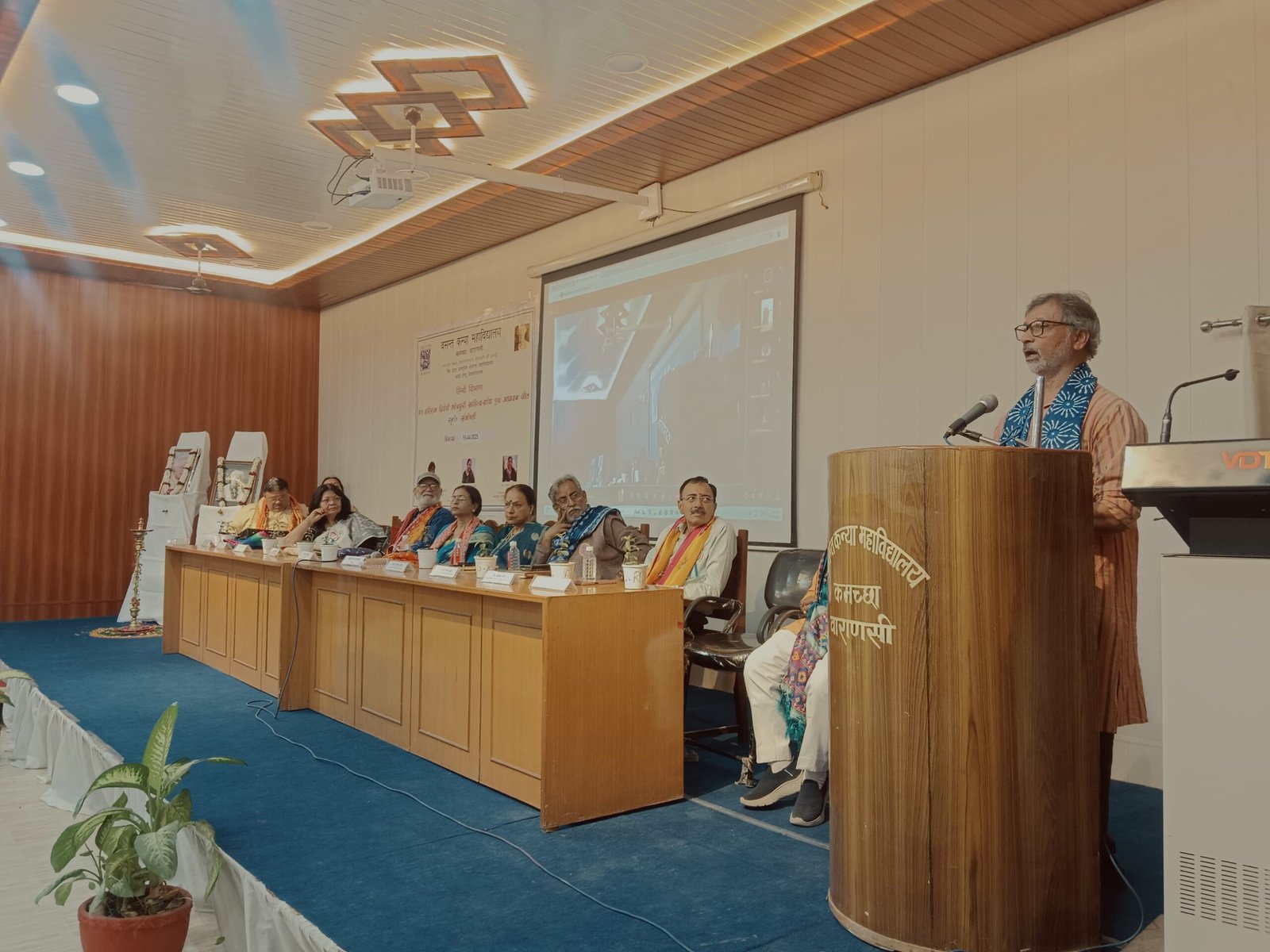 वाराणसी। वसंत कन्या महाविद्यालय में पं. हरिराम द्विवेदी भोजपुरी साहित्य-शोध अध्ययन पीठ, हिन्दी विभाग द्वारा आयोजित पंडित हरिराम द्विवेदी जयंती समारोह एवं भोजपुरी कवि सम्मेलन अपरान्ह 2ः00 से 4ः30 के बीच महाविद्यालय के सभागार में हुआ। कार्यक्रम का शुभारंभ अतिथियों द्वारा दीप प्रज्ज्वलन एवं पुष्पांजलि से हुआ तत्पश्चात् संगीत विभाग की प्रो. सीमा वर्मा के निर्देशन में छात्राओं द्वारा सुमधुर कुलगीत का प्रस्तुत किया गया। इस मौके पर उत्तरीय और पौधा देकर प्रबंधक, प्राचार्या एवं विभागाध्यक्ष द्वारा अतिथियों को सम्मानित किया गया। स्वागत वक्तव्य देते हुए महाविद्यालय की प्राचार्या प्रोफेसर रचना श्रीवास्तव ने कहा कि यहां इस अवसर पर आज हिन्दी के सितारे विभिन्न रूप में उपस्थित हैं। आज के इस कार्यक्रम से निश्चित रूप से भोजपुरी जगत में एक नया अध्याय जुड़ेगा। अपनी संस्कृति एवं सभ्यता को संवारने के लिए मातृभाषा अत्यन्त आवश्यक है।