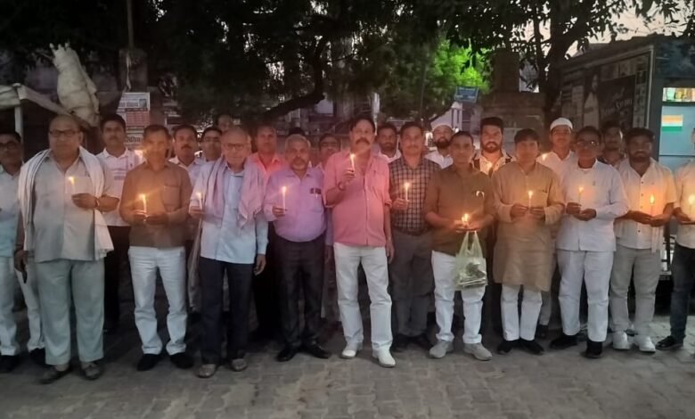 पहलगाम में आतंकवादियों द्वारा मारे गए पर्यटकों को घोसी में कैंडल मार्च निकाल दी श्रद्धांजलि