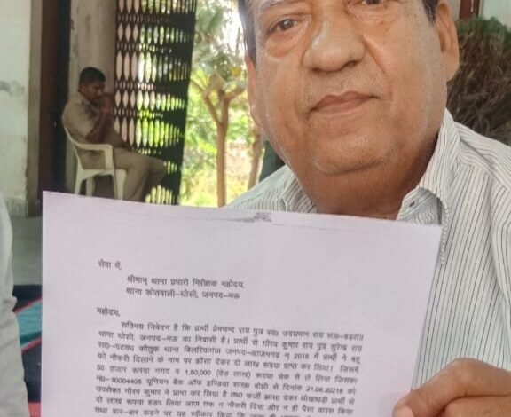 घोसी (मऊ): नौकरी का झांसा देकर दो लाख रुपये की ठगी का मामला सामने आया है। बड़रांव निवासी पीसी राय ने घोसी कोतवाली में तहरीर देकर आरोप लगाया है कि आजमगढ़ के पटवध कौतुक निवासी गौरव कुमार राय ने उनकी बहु को सरकारी विभाग में नौकरी दिलाने का भरोसा दिलाया और इसके एवज में दो लाख रुपये ऐंठ लिए।पीसी राय का कहना है कि गौरव ने उन्हें विश्वास में लेकर कई दस्तावेज भी लिए और लंबे समय तक टालमटोल करता रहा। जब उन्होंने पैसे वापस मांगे तो गौरव ने धमकी देना शुरू कर दिया। आखिरकार पीड़ित ने न्याय की उम्मीद में घोसी कोतवाली का रुख किया।घोसी कोतवाली प्रभारी का कहना है कि मामला दर्ज कर जांच शुरू कर दी गई है। दोषी पाए जाने पर कड़ी कार्रवाई की जाएगी।